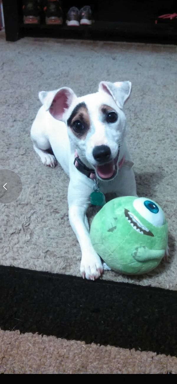 Short hair, smooth coat, short-medium length legs with a height of inches tall. She weighs about 14 pounds and is solid white. Her mom has white and brown markings and her dad is white and tri color. She has a playful demeanor.